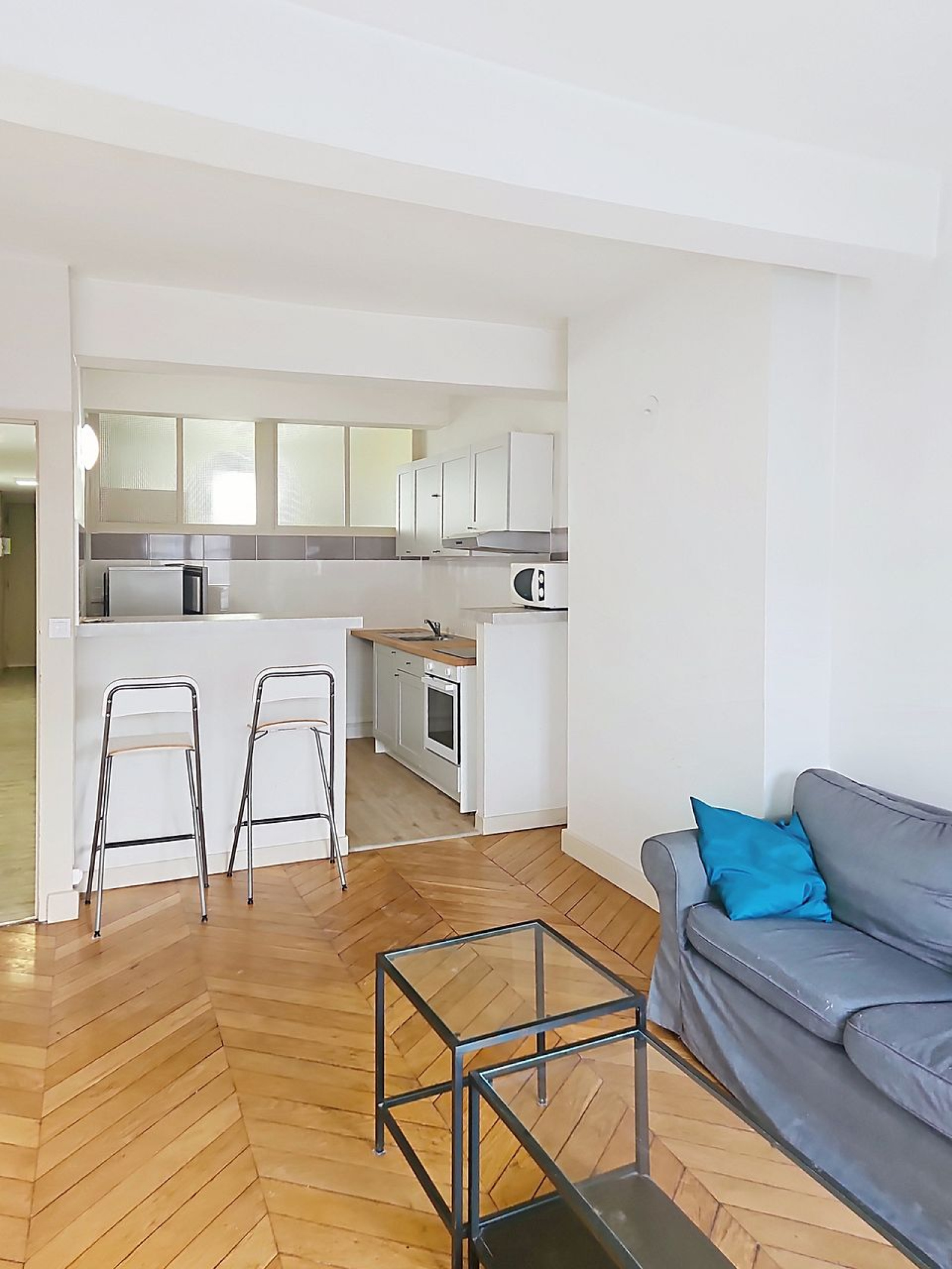 CET APPARTEMENT SE COMPOSE D'UNE CUISINE EQUIPEE OUVERTE SUR LE SEJOUR (BEAU PARQUET) EXPOSITION SUD, D'UNE CHAMBRE SUR COUR INTERIEURE, SPACIEUSE SALLE DE BAIN ET WC.